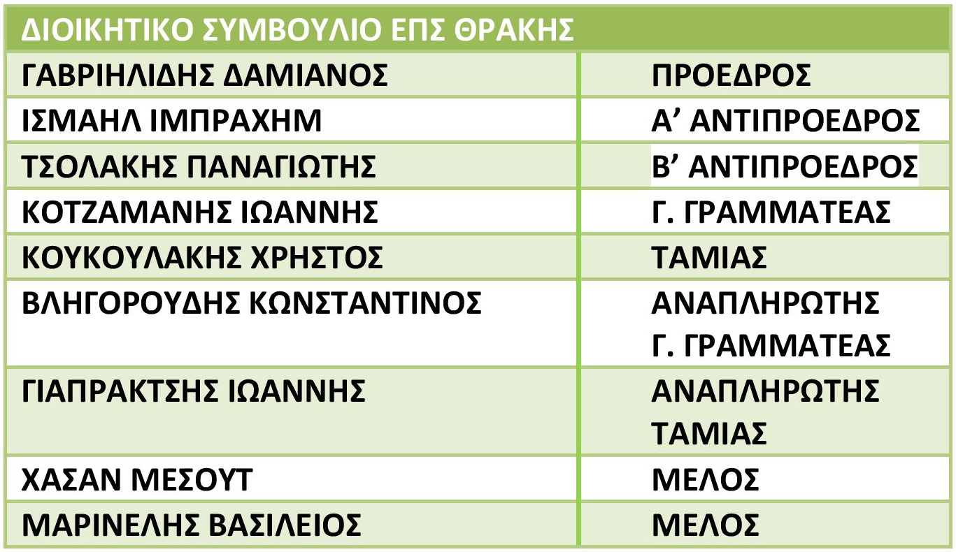 ΑΝΑΚΟΙΝΩΣΕΙΣ ΣΎΝΘΕΣΗ ΔΣ ΕΠΣ ΘΡΑΚΗΣ admin 08/02/2022 Μετά τις αρχαιρεσίες της 2ης ΦΕΒΡΟΥΆΡΙΟΥ 2022 μετά την κατανομή των αξιωμάτων έχει ως εξής: Continue Reading Previous: Κλήρωση Γ φάσης ΚυπέλλουNext: Κοπή βασιλόπιτας ΕΠΣ Θράκης Related Stories ΑΝΑΚΟΙΝΩΣΕΙΣ Β ΕΡΑΣΙΤΕΧΝΙΚΗ ΠΡΩΤΑΘΛΗΜΑ Β ΚΛΗΡΩΣΗ Γ ΓΥΡΟΥ ΤΗΣ Β ΚΑΤΗΓΟΡΙΑΣ Ε.Π.Σ ΘΡΑΚΗΣ admin 03/04/2026 ΑΝΑΚΟΙΝΩΣΕΙΣ ΜΙΚΤΕΣ ΟΜΑΔΕΣ ΠΑΙΔΙΚΑ ΑΝΑΠΤΥΞΙΑΚΟ ΠΡΟΓΡΑΜΜΑ ΠΡΟΕΠΙΛΟΓΗΣ ΕΘΝΙΚΩΝ ΟΜΑΔΩΝ Κ13 admin 01/04/2026 Α Ερασιτεχνικη ΑΝΑΚΟΙΝΩΣΕΙΣ ΠΡΩΤΑΘΛΗΜΑ Α ΑΠΟΤΕΛΕΣΜΑΤΑ 2ης ΑΓΩΝΙΣΤΙΚΗΣ Α ΚΑΤΗΓΟΡΙΑΣ Ε.Π.Σ ΘΡΑΚΗΣ admin 31/03/2026